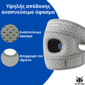 - Ανατομικός σχεδιασμός: εφαρμόζει ιδανικά στο γόνατο, σταθεροποιεί την επιγονατίδα και μειώνει την πίεση στην άρθρωση